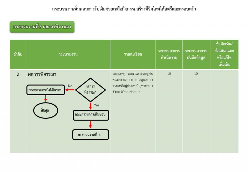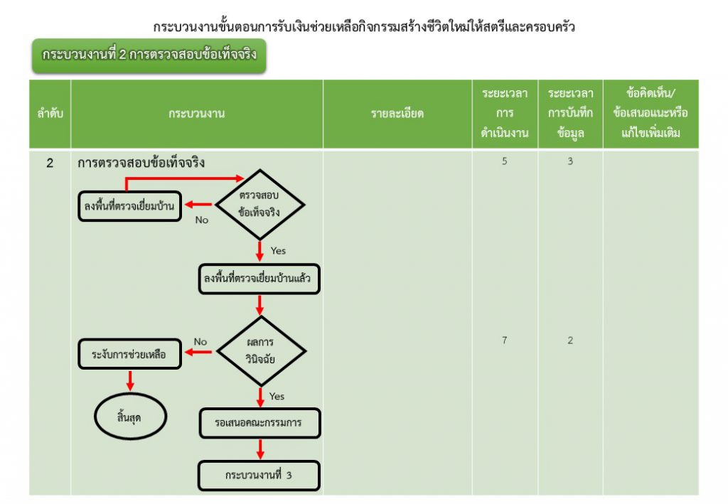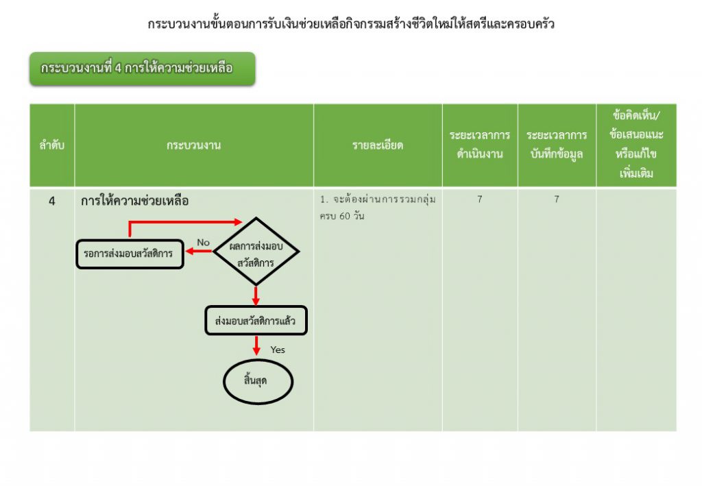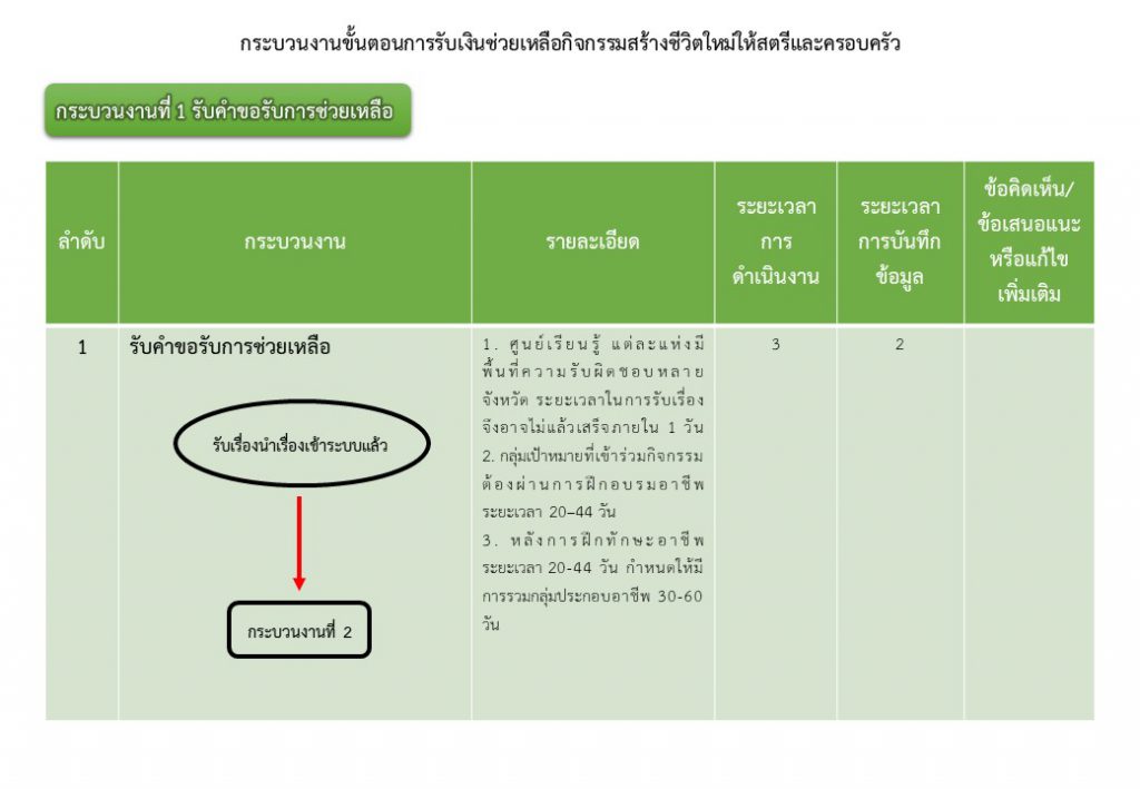 กระบวนงานขั้นตอนการรับเงินช่วยเหลือกิจกรรมสร้างชีวิตใหม่ให้สตรีและครอบครัว