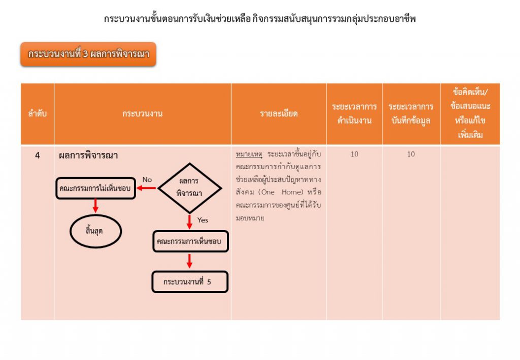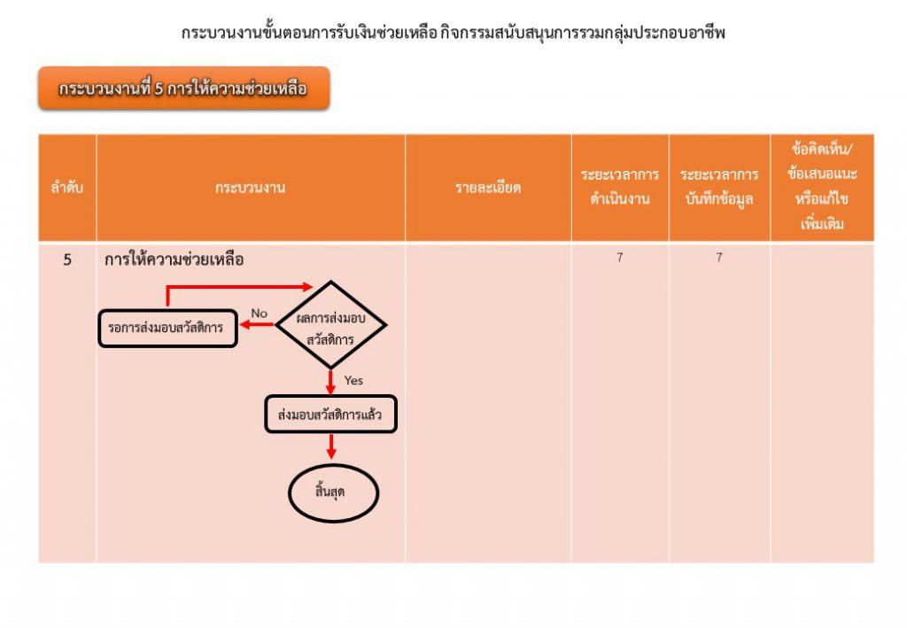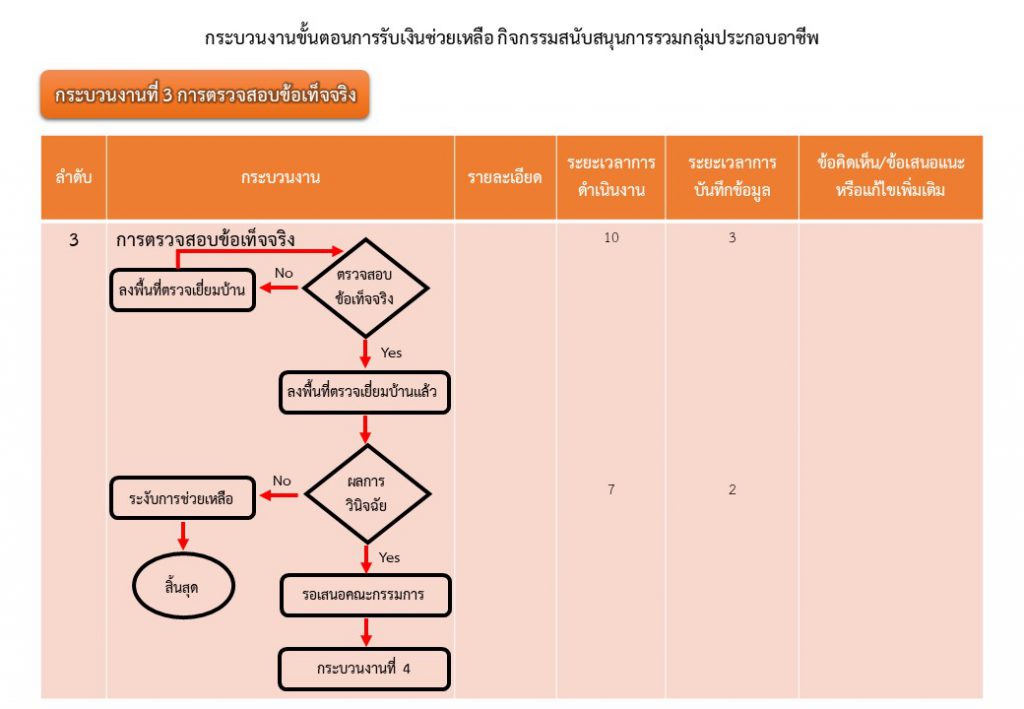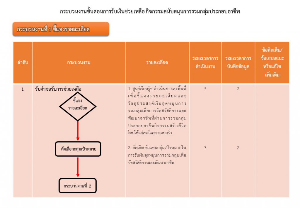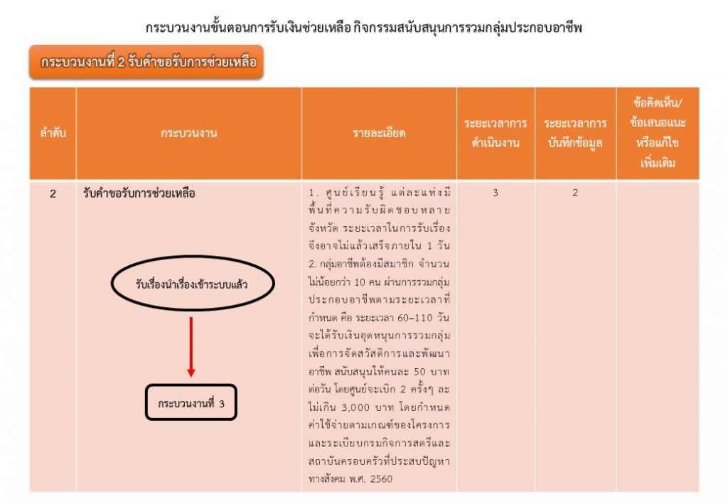 กระบวนงานขั้นตอนการรับเงินช่วยเหลือ กิจกรรมสนับสนุนการรวมกลุ่มประกอบอาชีพ