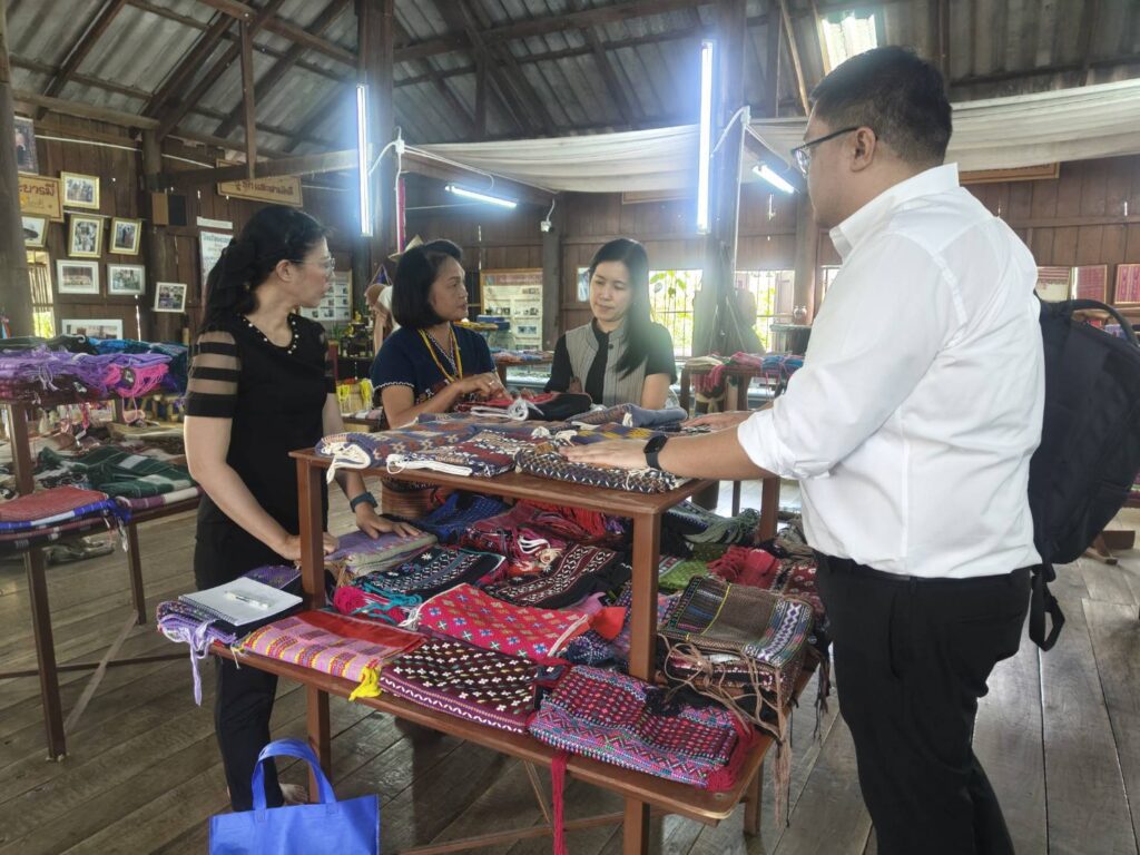 วันที่ 4 ธันวาคม 2568 นางรชยา ฮั่นตระกูล ผู้อำนวยการศูนย์เรียนรู้การพัฒนาสตรีและครอบครัวเฉลิมพระเกียรติ 72 พรรษา บรมราชินีนาถ จังหวัดลำพูน พร้อมด้วยข้าราชการกลุ่มส่งเสริมการเรียนรู้และพัฒนาอาชีพ ลงพื้นที่เพื่อขับเคลื่อนโครงการสตรีไทยกับการยกระดับผ้า เพื่อส่งเสริมสนับสนุนอาชีพหัตกรรมจากผ้าที่ขับเคลื่อนโดยกลุ่มอาชีพในชุมชน สู่ความยั่งยืนของสตรีและครอบครัว ภายใต้โครงการสตรีไทยกับการยกระดับผ้า เพื่อ Matching กลุ่มอาชีพด้านผ้ากับเยาวชนนักออกแบบ ร่วมกับอาจารย์ แผนกแฟชั่นและสิ่งทอ วิทยาลัยการอาชีพป่าซาง และกลุ่มอาชีพสตรี ร่วมกันหารือแนวทางการดำเนินการประสานความร่วมมือในการส่งเสริมการออกแบบลายผ้า และการพัฒนารูปแบบผลิตภัณฑ์ ณ กลุ่มทอผ้ายกดอก บ้านบวก ตำบลดงดำ อำเภอลี้ จังหวัดลำพูน และกลุ่มเก่อญอผ้าทอกะเหรี่ยง บ้านห้วยต้ม ตำบลนาทราย อำเภอลี้ จังหวัดลำพูน
