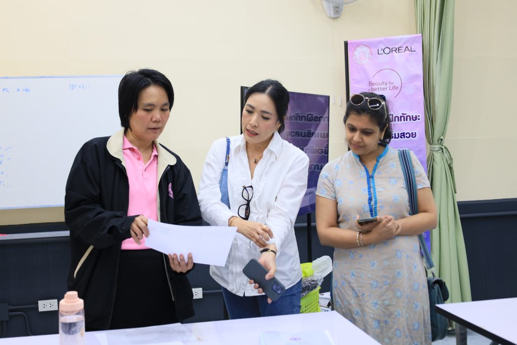 วันที่ 19 กุมภาพันธ์ 2568 นางรชยา ฮั่นตระกูล ผู้อำนวยการศูนย์เรียนรู้การพัฒนาสตรีและครอบครัวเฉลิมพระเกียรติ 72 พรรษา บรมราชินีนาถ จังหวัดลำพูน มอบหมายให้กลุ่มส่งเสริมการเรียนรู้และพัฒนาอาชีพ ร่วมให้การต้อนรับคุณสิตานัน สิทธิกิจ ผู้จัดการแผนกกิจการเพื่อสังคมและสื่อสารสัมพันธ์ และคุณ Rohini BEHL, Head of Sustainability ประจำ SAPMENA Zone ผู้แทนจากบริษัท ลอรีอัล(ประเทศไทย) จำกัด เนื่องในโอกาสเยี่ยมชมการเรียนการสอนภายใต้โครงการฝึกทักษะอาชีพเสริมสวยเพื่อพัฒนาคุณภาพชีวิต(Beauty For a Better Life) “หลักสูตรตัดผมชาย- ทำสีเบื้องต้น รุ่นที่ 1” (30 วัน :180 ชั่วโมง) ในการนี้ นางสาวจันทร์จิรา จุลกาญจน์ รักษาการในตำแหน่งผู้อำนวยการศูนย์ฯ พร้อมด้วยเจ้าหน้าที่ ได้พาเยี่ยมชมการเรียนการสอนหลักสูตรของศูนย์ฯ ที่กำลังดำเนินการ ได้แก่ หลักสูตรตัดเย็บและสร้าง Pattern ผ้าถุงกระโปรง/กางเกงเบื้องต้น, หลักสูตรครัวซอง&พาย, หลักสูตรถ่ายคลิป/ตัดต่อวีดีโอด้วยมือถือ สร้างอาชีพนักรีวิว และชมห้องแสดงผลิตภัณฑ์กลุ่มอาชีพ ณ ศูนย์เรียนรู้การพัฒนาสตรีและครอบครัวฯ จังหวัดลำพูน