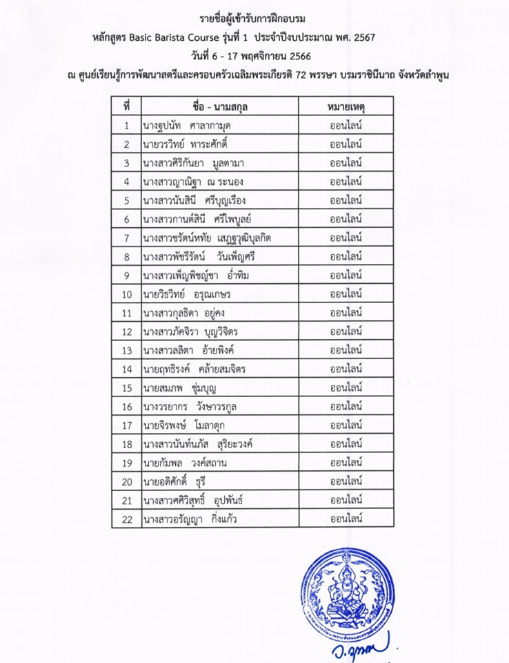 ðĢðĢāļāļĢāļ°āļāļēāļĻāļāļĨāļŠāļąāļĄāļ āļēāļĐāļāđ āļĒāļ·āļāļĒāļąāļāļĢāļēāļĒāļāļ·āđāļāđāļāļ·āđāļāđāļāļ·āđāļāļāļđāđāļĢāļąāļāļāļēāļĢāļāļķāļāļāļāļĢāļĄāļāļēāļāļĩāļ “āļŦāļĨāļąāļāļŠāļđāļāļĢ Basic Barista Course” āļĢāļļāđāļāļāļĩāđ 1 (āđāļĢāļĩāļĒāļāļāļąāļāļāļĢāđ â āļĻāļļāļāļĢāđ) āļŦāļĨāļąāļāļŠāļđāļāļĢāļĢāļ°āļĒāļ°āļŠāļąāđāļāļ āļēāļĒāđāļāļŠāļāļēāļāļąāļ āļāļēāļĄāļĢāļēāļĒāļāļ·āđāļāđāļāđāļĨāļ°āļŦāļĨāļąāļāļŠāļđāļāļĢ āļāļąāļāļāļĩāđ