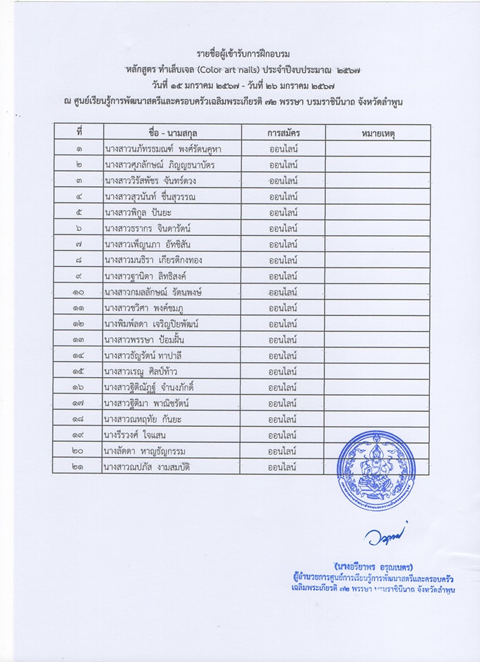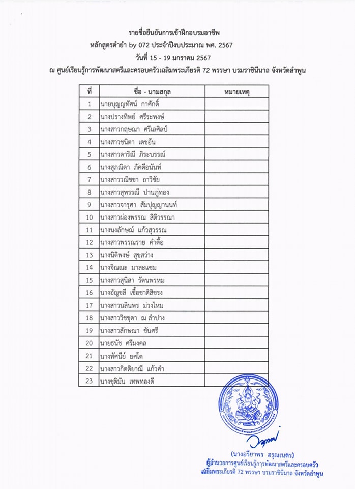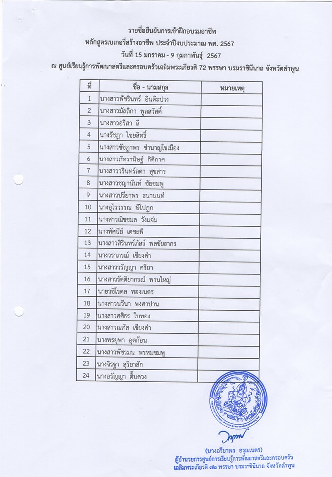 📣📣ประกาศยืนยันรายชื่อ เพื่อผู้รับการฝึกอบรมอาชีพ หลักสูตรระยะสั้นภายในสถาบัน ประจำปีงบประมาณ พ.ศ. 2567 ตามรายชื่อ ดังนี์