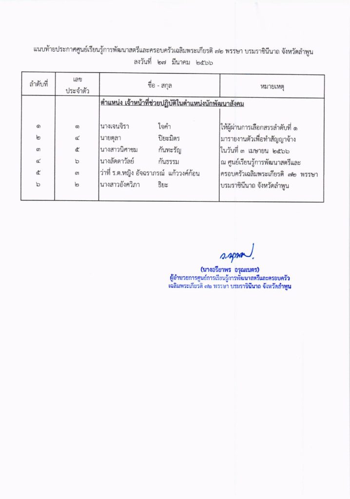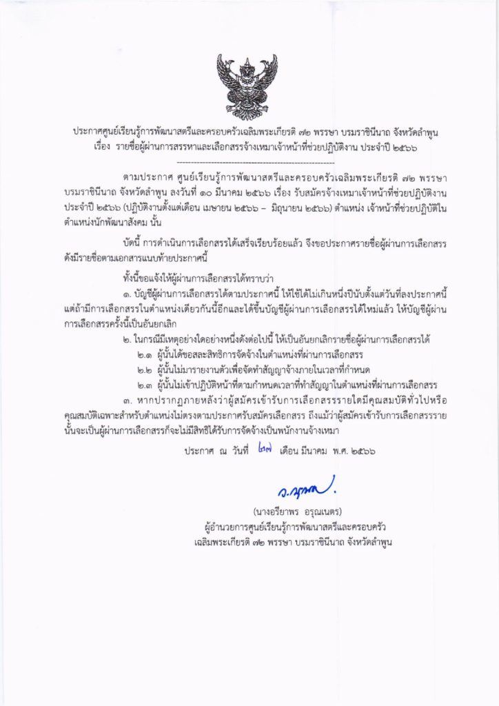 เรื่อง รายชื่อผู้ผ่านการสรรหาและเลือกสรรจ้างเหมาเจ้าหน้าที่ช่วยปฏิบัติงาน ประจำปี 2566