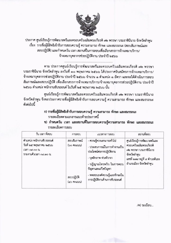 ประกาศ ศูนย์เรียนรู้การพัฒนาสตรีและครอบครัวเฉลิมพระเกียรติ 72 พรรษา บรมราชินีนาถ จังหวัดลำพูน