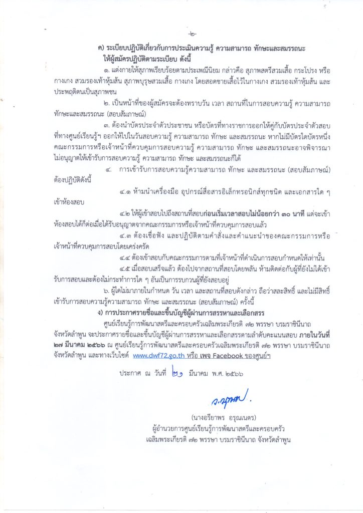 ประกาศ ศูนย์เรียนรู้การพัฒนาสตรีและครอบครัวเฉลิมพระเกียรติ 72 พรรษา บรมราชินีนาถ จังหวัดลำพูน