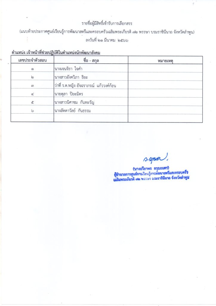 ประกาศรายชื่อผู้เข้ารับการสอบความรู้ ความสามารถ ทักษะ และสมรรถนะ (สัมภาษณ์) จนท.ช่วยปฏิบัติในตำแหน่งนักพัฒนาสังคม
