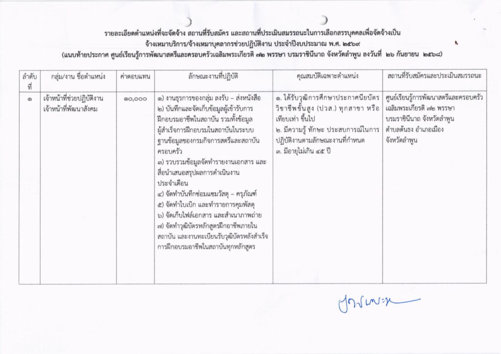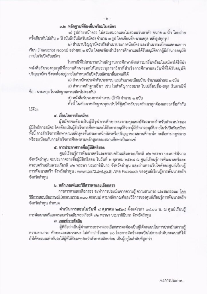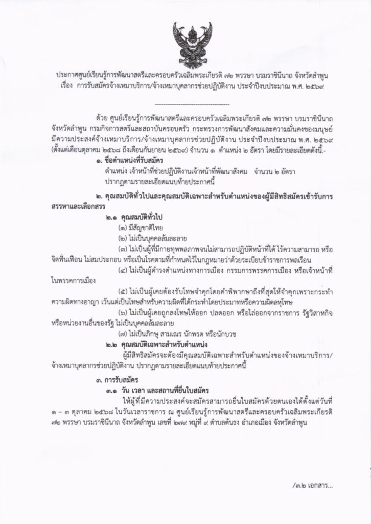 ตำแหน่ง เจ้าหน้าที่ช่วยปฏิบัติงานเจ้าหน้าที่พัฒนาสังคม จำนวน 2 อัตรา