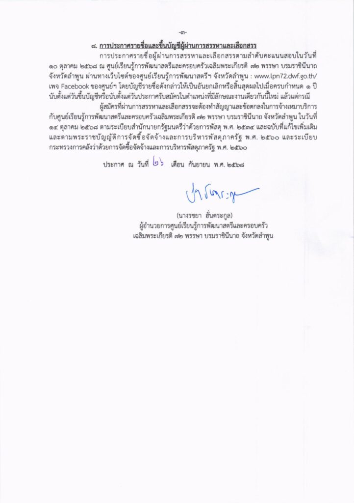 ประกาศศูนย์เรียนรู้การพัฒนาสตรีและครอบครัวเฉลิมพระเกียรติ 72 พรรษา บรมราชินีนาถ จังหวัดลำพูน
