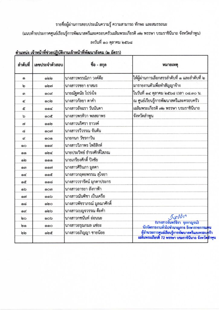 ตำแหน่ง เจ้าหน้าที่ช่วยปฏิบัติงานเจ้าพนักงานพัฒนาสังคม