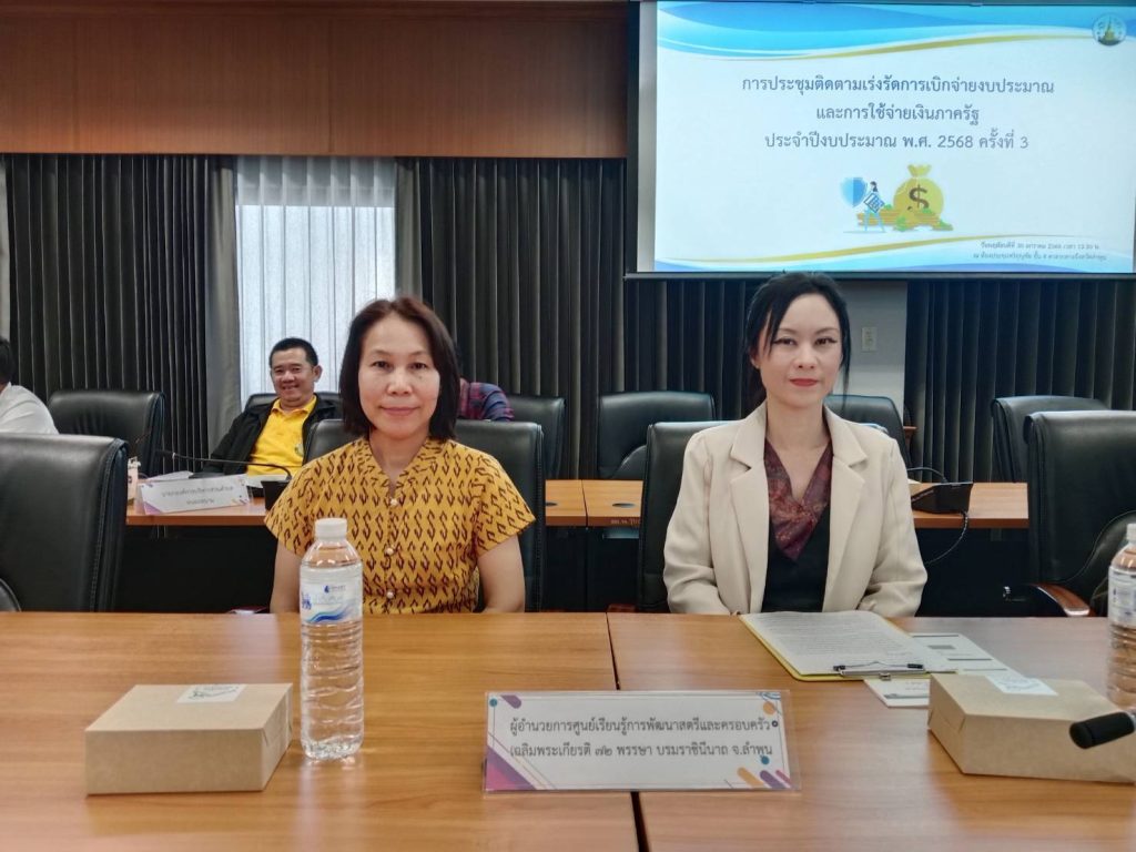 วันที่ 30 มกราคม 2568 นางรชยา ฮั่นตระกูล ผู้อำนวยการศูนย์เรียนรู้การพัฒนาสตรีและครอบครัวเฉลิมพระเกียรติ 72 พรรษา บรมราชินีนาถ จังหวัดลำพูน มอบหมายให้ข้าราชการฝ่ายบริหารทั่วไป เข้าร่วมการประชุมติดตามเร่งรัดการเบิกจ่ายงบประมาณและการใช้จ่ายเงินภาครัฐ ประจำปีงบประมาณ พ.ศ.2568 ครั้งที่ 3 เพื่อเป็นการติดตามความก้าวหน้าในการดำเนินการของส่วนราชการที่มีผลการเบิกจ่ายและการใช้งบประมาณที่เป็นไปตามเป้าหมาย พร้อมรับทราบปัญหาอุปสรรค โดยมีนายชาตรี ธินนท์ รองผู้ว่าราชการจังหวัดลำพูน เป็นประธานการประชุม พร้อมหัวหน้าส่วนงาน หน่วยงานที่เกี่ยวข้อง เข้าร่วมประชุมดังกล่าว ณ ห้องประชุมหริภุญชัย ชั้น 4 ศาลากลางจังหวัดลำพูน