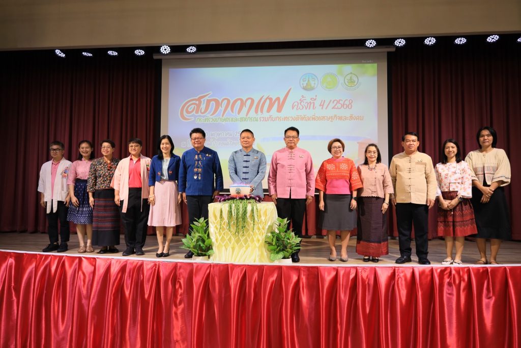 วันที่ 20 พฤษภาคม 2568 นางรชยา ฮั่นตระกูล ผู้อำนวยการศูนย์เรียนรู้การพัฒนาสตรีและครอบครัวเฉลิมพระเกียรติ 72 พรรษา บรมราชินีนาถ จังหวัดลำพูน พร้อมด้วยข้าราชการ เจ้าหน้าที่ เข้าร่วมกิจกรรมสภากาแฟจังหวัดลำพูน ครั้งที่ 4/2568 จัดโดยหน่วยงานสังกัดกระทรวงเกษตรและสหกรณ์ และกระทรวงดิจิทัล เพื่อเศรษฐกิจและสังคม กำหนดเป็นเจ้าภาพ จัดกิจกรรมสภากาแฟครั้งนี้ เพื่อพบปะและแลกเปลี่ยนความคิดเห็น เรียนรู้ร่วมกันอย่างไม่เป็นทางการ และเสริมสร้างความสมัครสมานสามัคคีในการทำงาน โดยมีนายวิวัฒน์ อินทร์ไทยวงศ์ ผู้ว่าราชการจังหวัดลำพูน เป็นประธานเปิดกิจกรรม พร้อมด้วย รองผู้ว่าราชการจังหวัดลำพูน หัวหน้าส่วนงานราชการ ภาครัฐ ภาคเอกชน เข้าร่วมกิจกรรมดังกล่าว ณ ห้องประชุมเเกรนด์ ปา โฮเทล แอนด์ รีสอร์ท ลำพูน ตำบลเวียงยอง อำเภอเมือง จังหวัดลำพูน
