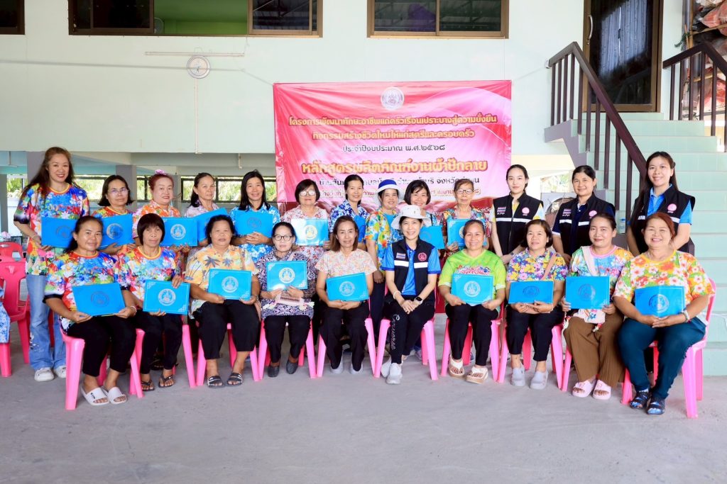 วันที่ 23 เมษายน 2568 นางรชยา ฮั่นตระกูล ผู้อำนวยการศูนย์เรียนรู้การพัฒนาสตรีและครอบครัวเฉลิมพระเกียรติ 72 พรรษา บรมราชินีนาถ จังหวัดลำพูน มอบหมายให้กลุ่มส่งเสริมการเรียนรู้และพัฒนาอาชีพ มอบวุฒิบัตร ติดตามและสรุปบทเรียน กิจกรรมสร้างชีวิตใหม่ให้แก่สตรีและครอบครัว ประจำปีงบประมาณ พ.ศ. 2568 “หลักสูตรผลิตภัณฑ์งานผ้าปักลาย” ให้แก่สตรีและครอบครัว กลุ่มผู้สูงอายุบ้านสันมะนะ ตำบลบ้านธิ อำเภอบ้านธิ จังหวัดลำพูน ในการนี้ ท่านผู้อำนวยการศูนย์ฯ ได้มอบวุฒิบัตรและให้โอวาทแก่ผู้สำเร็จการฝึกอบรม จำนวนทั้งสิ้น 20 คน ณ ที่ทำการกลุ่มบ้านสันมะนะ ตำบลบ้านธิ อำเภอบ้านธิ จังหวัดลำพูน