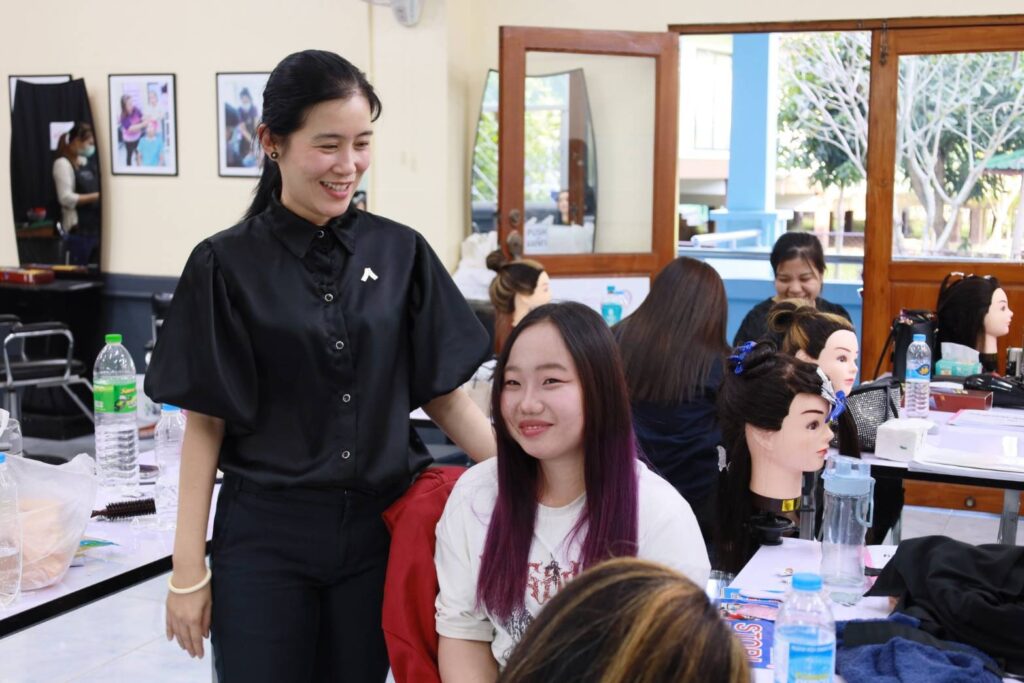 วันที่ 25 พฤศจิกายน 2568 นางรชยา ฮั่นตระกูล ผู้อำนวยการศูนย์เรียนรู้การพัฒนาสตรีและครอบครัวเฉลิมพระเกียรติ 72 พรรษา บรมราชินีนาถ จังหวัดลำพูน เยี่ยมชมการเรียนการสอนหลักสูตรฝึกอบรมอาชีพภายในสถาบัน ประจำปีงบประมาณ พ.ศ. 2569 และพบปะ พูดคุยให้กำลังใจกับผู้รับการฝึกอบรมอาชีพ ได้แก่หลักสูตร สระ ไดร์ ตัด ทำสี (ลอรีอัล) รุ่นที่ 1/2569 : 20 วัน (จำนวน 20 คน), หลักสูตร Barista Course รุ่นที่ 1/2569 : 10 วัน (จำนวน 20 คน) และหลักสูตรแต่งหน้าเบื้องต้น : 5 วัน (จำนวน 20 คน) สอดรับกับนโยบาย “พม.ใกล้คุณ” ลดรายจ่าย สร้างรายได้ รีสตาร์ทชีวิต เพื่อนำทักษะอาชีพที่ได้เรียนรู้นำไปประกอบอาชีพ มีงานทำ สร้างรายได้ สามารถพึ่งตนเองได้ ต่อไป