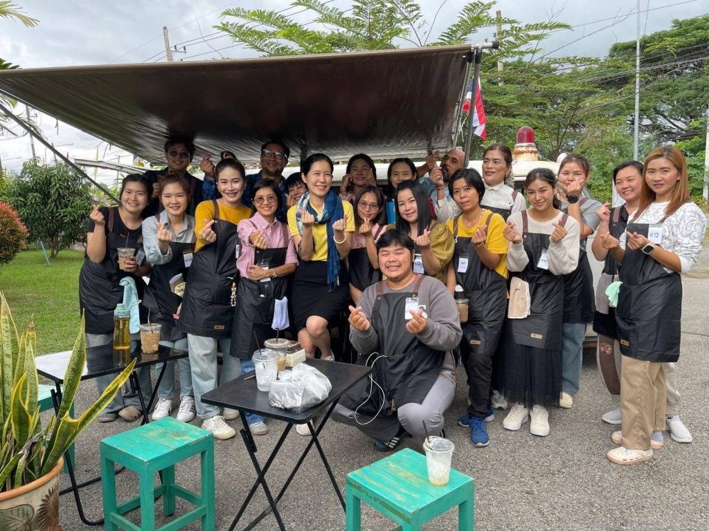 ผอ.ศสค.ลำพูน ให้กำลังใจ และแนะนำเพื่อพัฒนาให้กับผู้เข้ารับการฝึกอบรม “หลักสูตร Basic Barista Course” รุ่นที่ 1 ฝึกภาคปฏิบัติ “รถกาแฟโมบาย”