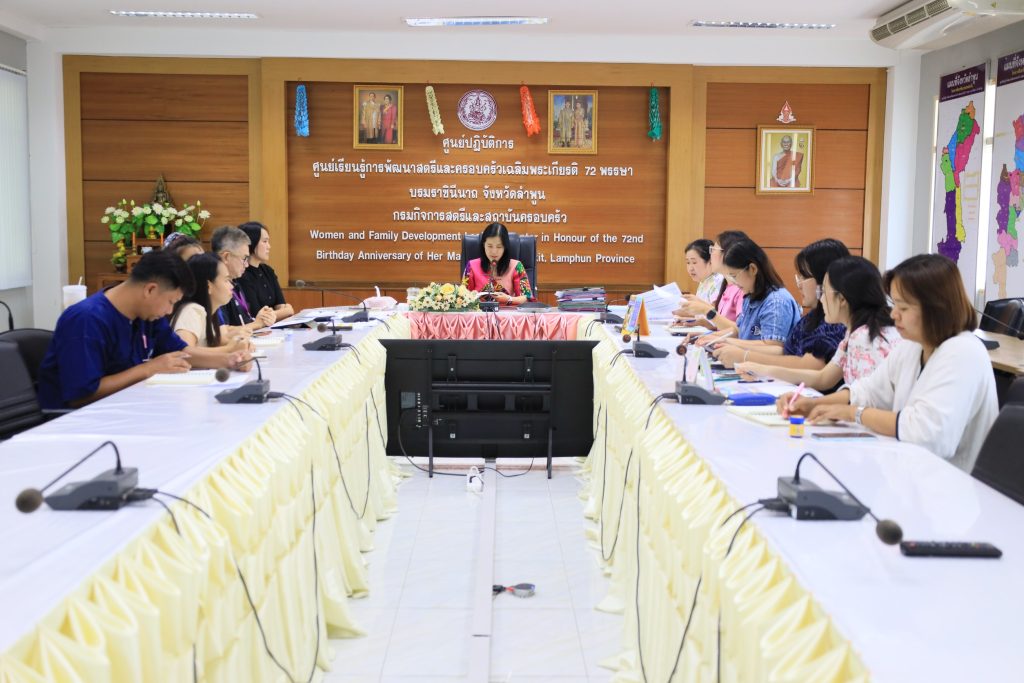 วันที่ 23 พฤษภาคม 2568 นางรชยา ฮั่นตระกูล ผู้อำนวยการศูนย์เรียนรู้การพัฒนาสตรีและครอบครัวเฉลิมพระเกียรติ 72 พรรษา บรมราชินีนาถ จังหวัดลำพูน พร้อมด้วยข้าราชการ เจ้าหน้าที่กลุ่มส่งเสริมการเรียนรู้และพัฒนาอาชีพ ร่วมประชุมติดตามงาน วางแผนการดำเนินงาน (ไตรมาสที่ 3) ประจำปีงบประมาณ พ.ศ. 2568 โดยชี้แจงประเด็นงานต่างๆ ตามลักษณะงานที่ทำประจำ งานกิจกรรม โครงการพิเศษที่ได้รับมอบหมาย รายงานผลการปฏิบัติงานเป็นรายบุคคล และร่วมกันวางแผนดำเนินงานอย่างมีประสิทธิภาพ เป้าหมายงานที่มีทิศทางชัดเจน ณ ห้องประชุมศูนย์ปฏิบัติการ (ศปก.) ของศูนย์เรียนรู้การพัฒนาสตรีและครอบครัวฯ จังหวัดลำพูน