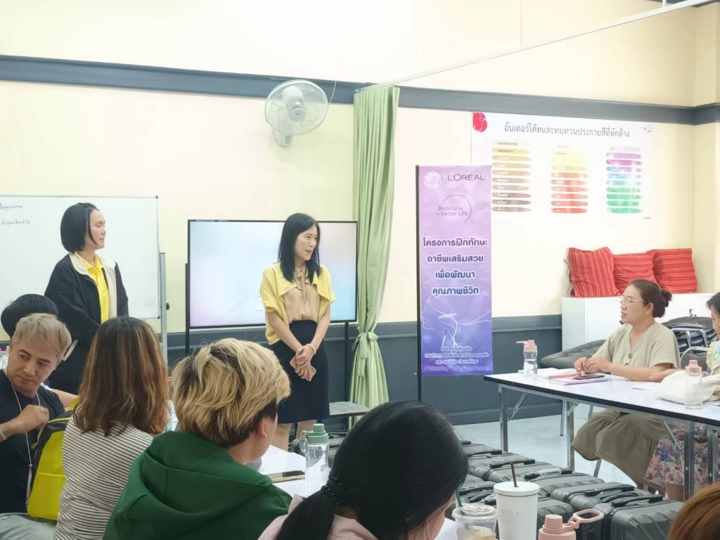 วันที่ 2 ธันวาคม 2567 นางรชยา ฮั่นตระกูล ผู้อำนวยการศูนย์เรียนรู้การพัฒนาสตรีและครอบครัวเฉลิมพระเกียรติ 72 พรรษา บรมราชินีนาถ จังหวัดลำพูน มอบหมายให้กลุ่มส่งเสริมการเรียนรู้และพัฒนาอาชีพ และกลุ่มส่งเสริมการจัดสวัสดิการสังคม รับรายงานตัว และปฐมนิเทศผู้เข้ารับการฝึกอบรมอาชีพ หลักสูตรระยะสั้นภายในสถาบัน ประจำปีงบประมาณ พ.ศ. 2568 “หลักสูตรตัด ดัด ยืด ซอยผมหญิง รุ่นที่1” (2 เดือน : จำนวน 240 ชั่วโมง) ด้วยความร่วมมือระหว่างกรมกิจการสตรีและสถาบันครอบครัว ร่วมกับ บริษัท ลอรีอัล (ประเทศไทย) จำกัด ในการนี้ ผู้อำนวยการศูนย์ฯ ได้กล่าวเปิดการฝึกอบรมอาชีพ และให้โอวาทแก่ผู้เข้ารับการฝึกอบรมอาชีพ จำนวน 15 คน ณ ห้องปฏิบัติการเสริมสวย อาคารทานตะวันชั้น 1 ของศูนย์เรียนรู้การพัฒนาสตรีและครอบครัวฯ จังหวัดลำพูน
