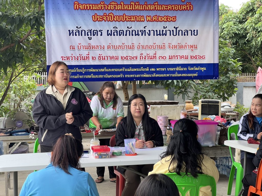 วันที่ 18 ธันวาคม 2567 นางรชยา ฮั่นตระกูล ผู้อำนวยการศูนย์เรียนรู้การพัฒนาสตรีและครอบครัวเฉลิมพระเกียรติ 72 พรรษา บรมราชินีนาถ จังหวัดลำพูน มอบหมายให้ข้าราชการและเจ้าหน้าที่กลุ่มส่งเสริมการเรียนรู้และพัฒนาอาชีพ ลงพื้นที่ติดตามกลุ่มอาชีพ “หลักสูตร ผลิตภัณฑ์งานผ้าปักลาย” และเยี่ยมบ้านสัมภาษณ์สมาชิกกลุ่ม จำนวน 30 คน เพื่อนำข้อมูลเข้ารับการพิจารณาสนับสนุนเงินอุดหนุนค่าแรงงานสตรีให้แก่กลุ่มอาชีพต่อไป ณ บ้านธิหลวง ตำบลบ้านธิ อำเภอบ้านธิ จังหวัดลำพูน