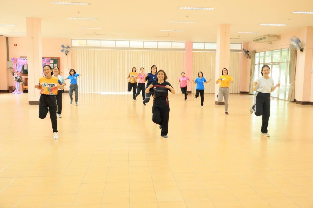 วันที่ 10 กรกฏาคม 2567 นางอรียาพร อรุณเนตร ผู้อำนวยการศูนย์เรียนรู้การพัฒนาสตรีและครอบครัวเฉลิมพระเกียรติ 72 พรรษา บรมราชินีนาถ จังหวัดลำพูน มอบหมายให้กลุ่มส่งเสริมการจัดสวัสดิการสังคม ดำเนินการจัดกิจกรรม “Good smile by healthy” ออกกำลังกาย (ทุกวันพุธ) เวลา 15.30 น. เป็นต้นไป สอดรับกิจกรรมชั่วโมงออกกำลังกายกระทรวง พม. ตระหนักถึงความสำคัญของการออกกำลังกายและการใส่ใจดูแลสุขภาพร่างกายของตนเอง ส่งเสริมให้บุคลากร เจ้าหน้าที่ได้ออกกำลังกาย อาทิตย์ละครั้ง เพื่อสุขภาพที่ดีแข็งแรง จิตใจแจ่มใส ร่าเริงเบิกบานเสริมสร้างภูมิคุ้มกัน พร้อมทำงานอย่างมีประสิทธิภาพ ณ ห้องประชุมตึกราตรี ของศูนย์เรียนรู้การพัฒนาสตรีและครอบครัวฯ จังหวัดลำพูน