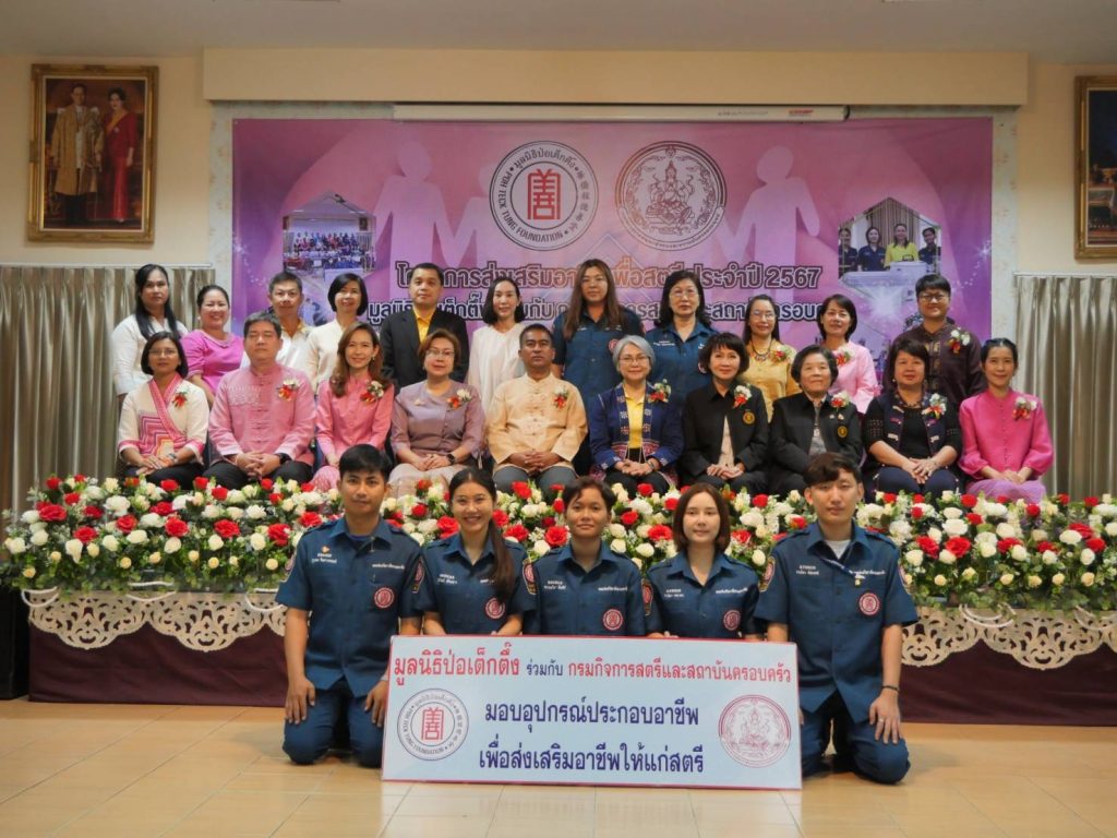 ศสค.ลำพูน จัดพิธีมอบวัสดุอุปกรณ์สนับสนุนประกอบอาชีพ ตามโครงการ “ส่งเสริมอาชีพเพื่อสตรี” ประจำปี พ.ศ. 2567 ด้วยความร่วมมือระหว่าง กรมกิจการสตรีและสถาบันครอบครัว กับ มูลนิธิป่อเต็กตึ๊ง