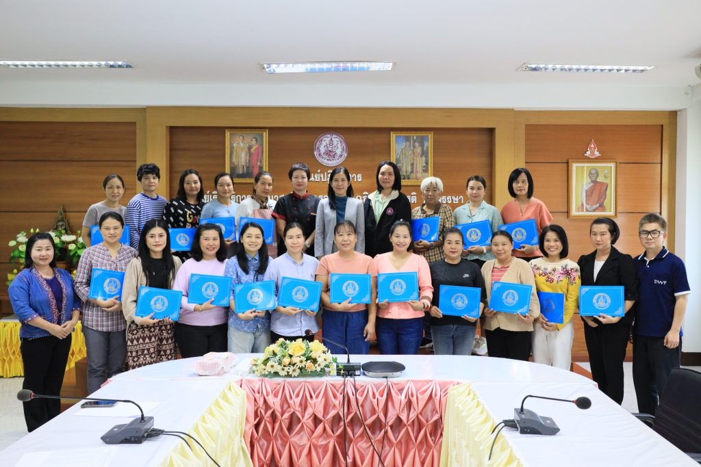 วันที่ 17 มกราคม 2568 นางรชยา ฮั่นตระกูล ผู้อำนวยการศูนย์เรียนรู้การพัฒนาสตรีและครอบครัวเฉลิมพระเกียรติ 72 พรรษา บรมราชินีนาถ จังหวัดลำพูน มอบหมายให้กลุ่มส่งเสริมการเรียนรู้และพัฒนาอาชีพ ดำเนินการจัดพิธีมอบวุฒิบัตร การฝึกอบรมอาชีพระยะสั้นภายในสถาบัน ประจำปีงบประมาณ พ.ศ. 2568 ได้แก่ หลักสูตร การทำคุกกี้ (ระยะสั้น 5 วัน) ซึ่งจัดระหว่างวันที่ 13 – 17 มกราคม 2567 มีผู้สำเร็จการฝึกอบรมจำนวนทั้งสิ้น 20 คน ในการนี้ ผู้อำนวยการศูนย์ฯ ได้มอบวุฒิบัตรและให้โอวาทแก่ผู้สำเร็จการฝึกอบรมหลักสูตรดังกล่าว ณ ห้องประชุมศูนย์ปฏิบัติการ (ศปก.) ของศูนย์เรียนรู้การพัฒนาสตรีและครอบครัวฯ จังหวัดลำพูน