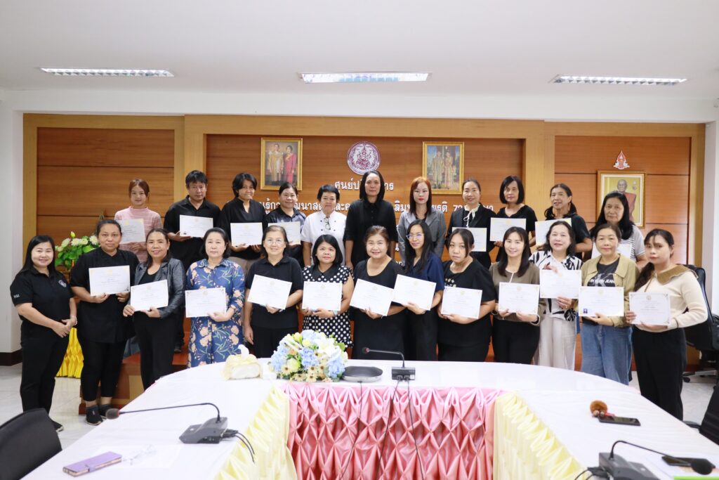 วันที่ 19 ธันวาคม 2568 นางรชยา ฮั่นตระกูล ผู้อำนวยการศูนย์เรียนรู้การพัฒนาสตรีและครอบครัวเฉลิมพระเกียรติ 72 พรรษา บรมราชินีนาถ จังหวัดลำพูน มอบหมายให้กลุ่มส่งเสริมการเรียนรู้และพัฒนาอาชีพดำเนินการจัดพิธีมอบวุฒิบัตร การฝึกอบรมอาชีพระยะสั้นภายในสถาบัน ประจำปีงบประมาณ พ.ศ. 2569 หลักสูตร อาหารใต้รสเด็ด (5 วัน) ฝึกอบรมระหว่างวันที่ 15 – 19 ธันวาคม 2568 มีผู้สำเร็จการฝึกอบรมอาชีพจำนวน 20 คน ในการนี้ นางสาวจันทร์จิรา จุลกาญจน์ หัวหน้าฝ่ายบริหารทั่วไป รักษาราชการแทนผู้อำนวยการศูนย์ฯ ได้มอบวุฒิบัตรและให้โอวาท ให้แก่ผู้สำเร็จการฝึกอบรมหลักสูตรดังกล่าว และมอบผลิตภัณฑ์ที่ได้รับการสนับสนุนจากลอรีอัล ณ ห้องประชุมศูนย์ปฏิบัติการ (ศปก.) ของศูนย์เรียนรู้การพัฒนาสตรีและครอบครัว ฯ จังหวัดลำพูน