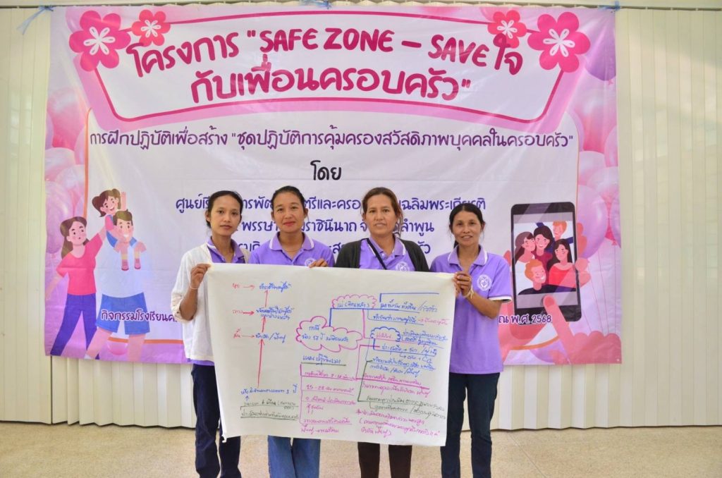 วันที่ 18 เมษายน 2568 นางรชยา ฮั่นตระกูล ผู้อำนวยการศูนย์เรียนรู้การพัฒนาสตรีและครอบครัวเฉลิมพระเกียรติ 72 พรรษา บรมราชินีนาถ จังหวัดลำพูน มอบหมายให้กลุ่มส่งเสริมการจัดสวัสดิการสังคม ดำเนินการจัดโครงการ “Safe Zone – Save ใจ กับเพื่อนครอบครัว” ภายใต้กิจกรรมโรงเรียนครอบครัว พื้นที่เรียนรู้สำหรับสมาชิกและครอบครัวทุกช่วงวัย ประจำปีงบประมาณ 2568 ระยะที่ 2 การฝึกปฏิบัติเพื่อสร้าง ”ชุดปฏิบัติการคุ้มครองสวัสดิภาพบุคคลในครอบครัว” เพื่อนิเทศติดตามการจัดบริการสวัสดิการสังคม ในบริบทการดูแล ฟื้นฟู และพัฒนาคุณภาพชีวิต บุคคลในครอบครัวเปราะบาง และการฝึกปฏิบัติการให้ความช่วยเหลือผู้ประสบปัญหาทางสังคมตามกลไกทีมสหวิชาชีพในการทำงานเชิงพื้นที่ กลุ่มเป้าหมายประกอบด้วย อาสาสมัคร และผู้นำชุมชนในพื้นที่ตำบลบ้านแปะ อำเภอจอมทอง จังหวัดเชียงใหม่ จำนวน 40 คน ณ ห้องประชุมโรงพยาบาลส่งเสริมสุขภาพตำบลบ้านขุนแปะ ตำบลบ้านแปะ อำเภอจอมทอง จังหวัดเชียงใหม่