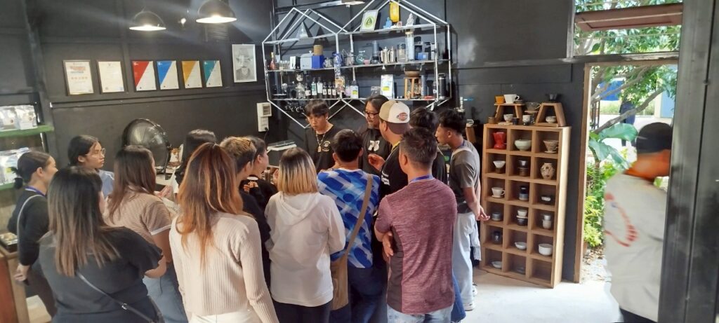 วันที่ 24 พฤศจิกายน 2568 นางรชยา ฮั่นตระกูล ผู้อำนวยการศูนย์เรียนรู้การพัฒนาสตรีและครอบครัวเฉลิมพระเกียรติ 72 พรรษา บรมราชินีนาถ จังหวัดลำพูน มอบหมายให้กลุ่มส่งเสริมการเรียนรู้และพัฒนาอาชีพ นำผู้ฝึกอบรมอาชีพ หลักสูตร Barista Course รุ่นที่ 1 จำนวน 20 คน ได้ออกพื้นที่ศึกษาดูงานธุรกิจร้านกาแฟ ของผู้สำเร็จการฝึกอบรมอาชีพหลักสูตร Barista Course และวิทยากร จำนวนรวม 6 ร้าน ได้แก่ ร้าน “Mobile Coffee” by MALAJORN CAFE” ต.บ้านแป้น อ.เมือง จ.ลำพูน ร้านของนายบวรศักดิ์ สุนทรจันทร์ (วิทยากรผู้สอน), ร้าน “ชินจังอร่อยจัง Shinchan Aroijan” ต.นครเจดีย์ อ.ป่าซาง จ.ลำพูน (นายชาตรี สะทองซัง) ผู้สำเร็จหลักสูตร Basic Barista Course รุ่นที่ 2/2568, ร้าน “ทอยส์คาเฟ่” ต.ป่าซาง อ.ป่าซาง จ.ลำพูน (นางสาวนันนภัส สุวรรณศรี) ผู้สำเร็จหลักสูตร รบาริสต้าสร้างรายได้ รุ่นที่ 1/2566, ร้าน “U-NA Coffee & Roaster” ต.บ้านกลาง อ.สันป่าตอง จ.เชียงใหม่ (นายนพด จิตนาริน) ผู้สำเร็จหลักสูตร Basic Barista Course รุ่นที่ 2/2568, ร้าน “เปิ๋งใจ๋กาแฟ” ต.ปากบ่อง อ.ป่าซาง จ.ลำพูน (นางนุชนารถ อินทโรจน์) ผู้สำเร็จหลักสูตร Basic Barista Course รุ่นที่ 1/2568 และร้าน “Taiyou Coffee” ต.ปากบ่อง อ.ป่าซาง จ.ลำพูน (ว่าที่ร้อยตรีไอกูณฐ์ กมลแสง) ผู้สำเร็จหลักสูตรบาริสต้าสร้างรายได้ รุ่นที่ 1/2566 ได้มีการแลกเปลี่ยนเรียนรู้และแชร์ประสบการณ์ร่วมกันศิษย์เก่า ในประเด็นรูปแบบและสไตล์การเปิดร้าน การเลือกใช้วัสดุอุปกรณ์และเครื่องชงกาแฟให้มีความเหมาะสมสอดคล้องกับกลุ่มเป้าหมายและงบประมาณที่วางไว้ และการบริหารจัดการร้านและรูปแบบการบริการกับลูกค้าที่หลากหลาย ในเขตพื้นที่จังหวัดลำพูน – เชียงใหม่