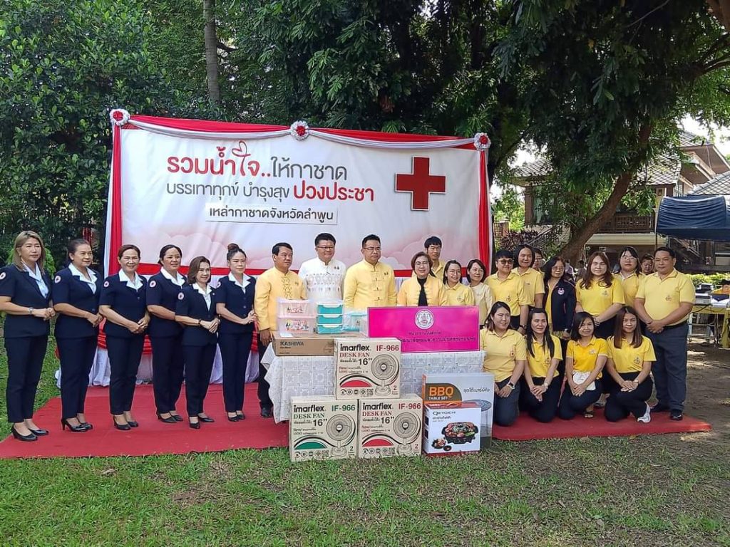 วันที่ 25 พฤศจิกายน 2567 นางรชยา ฮั่นตระกูล ผู้อำนวยการศูนย์เรียนรู้การพัฒนาสตรีและครอบครัวเฉลิมพระเกียรติ 72 พรรษา บรมราชินีนาถ จังหวัดลำพูน มอบหมายให้ข้าราชการ เจ้าหน้าที่ พร้อมด้วยทีมพม.หนึ่งเดียว ลำพูน เข้าร่วมกิจกรรม “วันรวมน้ำใจให้กาชาด ประจำปี 2567” บริจาคสิ่งของให้เหล่ากาชาดจังหวัดลำพูน เพื่อสนับสนุนกิจกรรมออกร้านมัจฉาของเหล่ากาชาดจังหวัดลำพูน ในงานสักการะพระนางจามเทวี และงานฤดูหนาวจังหวัดลำพูน ประจำปี 2567 จัดขึ้นระหว่างวันที่ 1– 10 ธันวาคม 2567 ในการนี้ ทีมพม.หนึ่งเดียว ลำพูน ร่วมถ่ายภาพกับ (ท่านโยธิน ประสงค์ความดี) รองผู้ว่าราชการจังหวัดลำพูน (ท่านชาตรี ธินนท์) รองผู้ว่าราชการจังหวัดลำพูน และคณะเหล่ากาชาดจังหวัดลำพูน ณ บริเวณสนามจวนผู้ว่าราชการจังหวัดลำพูน