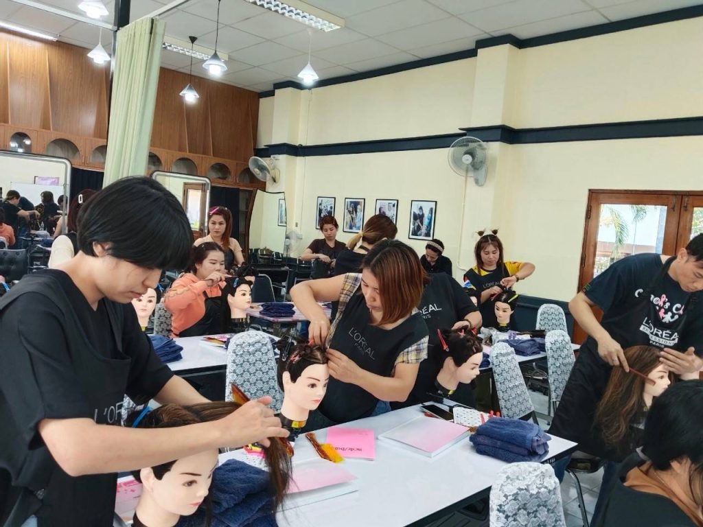 ระหว่างวันที่ 29 เมษายน – 3 พฤษภาคม 2567นางอรียาพร อรุณเนตร ผู้อำนวยการศูนย์เรียนรู้การพัฒนาสตรีและครอบครัวเฉลิมพระเกียรติ 72 พรรษา บรมราชินีนาถ จังหวัดลำพูน มอบหมายให้กลุ่มส่งเสริมการเรียนรู้และพัฒนาอาชีพ รายงานผลการดำเนินงาน “หลักสูตร ฝึกทักษะอาชีพเสริมสวยเพื่อพัฒนาคุณภาพชีวิต” รุ่นที่ 5 (ระยะสั้น 1 เดือน) ได้เรียนรู้และฝึกปฏิบัติจริง ได้แก่ โครงสร้างหลักของเส้นผม ผลิตภัณฑ์ของลอรีอัลที่ใช้กับเส้นผม สไตล์ลิ่งผลิตภัณฑ์จัดแต่งทรงผม การฝึกไดร์ตรง ไดร์วอลลุ่ม ไดฟาร่า กับหัวหุ่น และฝึกปฏิบัติกับคนจริง การสระผมการนวดหนังศีรษะ ในรูปแบบฉบับ ของลอรีอัล Professionalให้กับผู้เข้ารับการฝึกอบรมอาชีพ จำนวนทั้งสิ้น 20 คน ณ ห้องแผนกเสริมสวยสตรี อาคารฝึกอาชีพทานตะวัน ชั้น 1