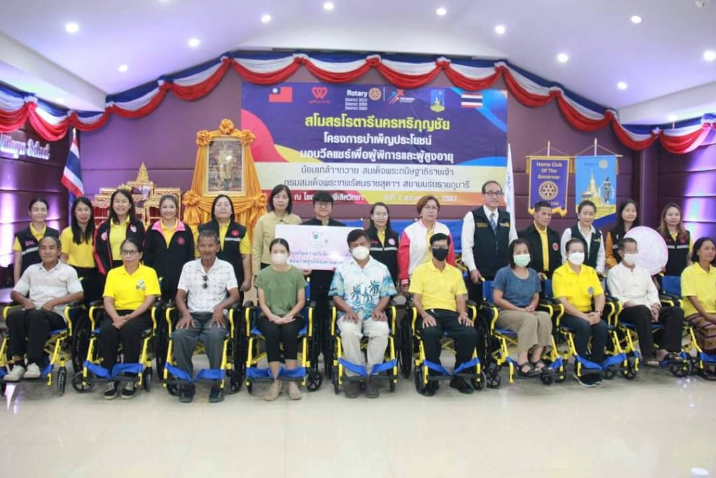 วันที่ 7 ตุลาคม 2567 นางสาวจันทร์จิรา จุลกาญจน์ รักษาการในตำแหน่งผู้อำนวยการศูนย์เรียนรู้การพัฒนาสตรีและครอบครัวเฉลิมพระเกียรติ 72 พรรษา บรมราชินีนาถ จังหวัดลำพูน มอบหมายให้ข้าราชการ ร่วมกับทีมพม.หนึ่งเดียว ลำพูน มอบรถวีลแชร์เพื่อผู้พิการและผู้สูงอายุ น้อมถวายเป็นพระราชกุศลแด่ สมเด็จพระกนิษฐาธิราชเจ้า กรมสมเด็จพระเทพรัตนราชสุดาฯ สยามบรมราชกุมารี จัดโดยสโมสรโรตารีนครหริภุญชัย นายสันติธร ยิ้มละมัย ผู้ว่าราชการจังหวัดลำพูน เป็นประธานมอบรถวีลแชร์เพื่อผู้พิการและผู้สูงอายุ พร้อมด้วยหัวหน้าส่วนราชการ ผู้บริหารองค์ปกครองส่วนท้องถิ่น ผู้อำนวยการโรงพยาบาลส่งเสริมสุขภาพตำบล ประชาชน เจ้าหน้าที่และหน่วยงานที่เกี่ยวข้องเข้าร่วม ณ ห้องประชุมโรงเรียนรพีเลิศวิทยา ตำบลป่าสัก อำเภอเมืองลำพูน จังหวัดลำพูน