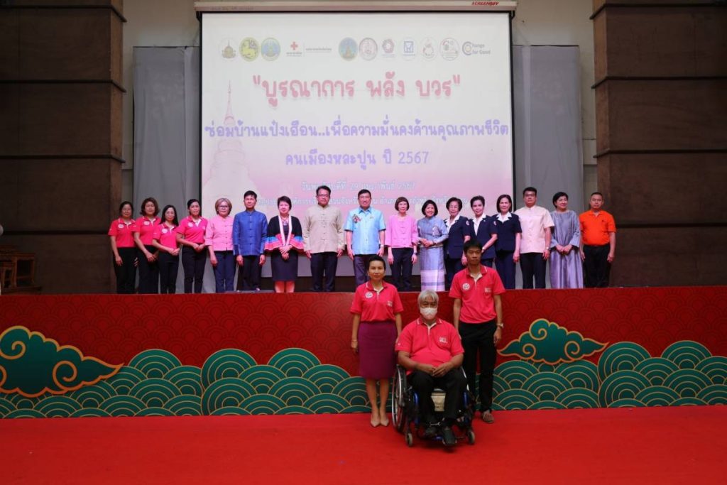 ศสค.ลำพูน ร่วมกับหน่วยงานพม.ลำพูน (พม.หนึ่งเดียว) ร่วมดำเนินการจัดกิจกรรมงาน “บูรณาการ พลัง บวร ซ่อมบ้านแป๋งเฮือน เพื่อความมั่นคงด้านคุณภาพชีวิตคนเมืองหละปูน ปี 2567”