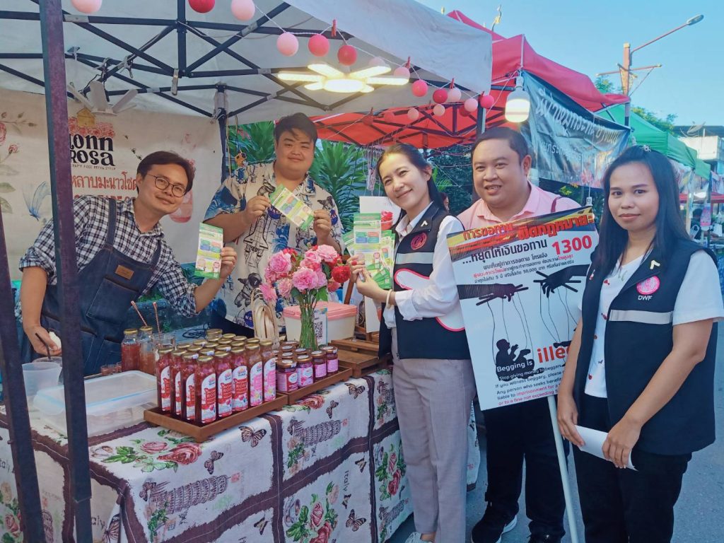 วันที่ 15 พฤศจิกายน 2567 นางรชยา ฮั่นตระกูล ผู้อำนวยการศูนย์เรียนรู้การพัฒนาสตรีและครอบครัวเฉลิมพระเกียรติ 72 พรรษา บรมราชินีนาถ จังหวัดลำพูน พร้อมด้วยเจ้าหน้าที่ศูนย์ฯ ร่วมกับ พม.หนึ่งเดียว จังหวัดลำพูน และภาคีเครือข่าย ลงพื้นที่จัดระเบียบคนไร้ที่พึ่งและคนขอทาน ตามโครงการจัดระเบียบและพัฒนาศักยภาพคนขอทาน “ให้ทานถูกวิธี ลดวิถีการขอทาน” และร่วมรณรงค์ยุติความรุนแรงต่อเด็ก สตรี และบุคคลในครอบครัวทุกรูปแบบ ณ บริเวณจัดงานเทศกาลโคมแสนดวงที่เมืองลำพูน วัดพระธาตุหริภุญชัยวรมหาวิหาร จังหวัดลำพูน