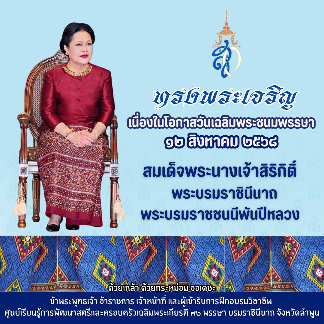 วันที่ 12 สิงหาคม 2568 นางรชยา ฮั่นตระกูล ผู้อำนวยการศูนย์เรียนรู้การพัฒนาสตรีและครอบครัวเฉลิมพระเกียรติ 72 พรรษา บรมราชินีนาถ จังหวัดลำพูน พร้อมด้วยข้าราชการ เเละเจ้าหน้าที่ศูนย์ฯ ร่วมลงนามถวายพระพร ผ่านระบบออนไลน์ สำนักพระราชวัง สมเด็จพระนางเจ้าสิริกิติ์ พระบรมราชินีนาถ พระบรมราชชนนีพันปีหลวง เนื่องในโอกาสวันเฉลิมพระชนมพรรษา 12 สิงหาคม 2568 จำนวนทั้งสิ้น 44 คน และได้เผยแพร่ประชาสัมพันธ์ผ่านช่องทางประชาสัมพันธ์ของศูนย์ฯ เพื่อแสดงออกถึงความจงรักภักดี และสำนึกในพระมหากรุณาธิคุณที่มีต่อพสกนิกรชาวไทย เทิดทูนสถาบันพระมหากษัตริย์ ซึ่งเป็นศูนย์รวมจิตใจของคนไทยทั้งชาติ ได้แก่เพจเฟสบุ๊คของศูนย์ฯ ประชาสัมพันธ์อย่างทั่วถึง