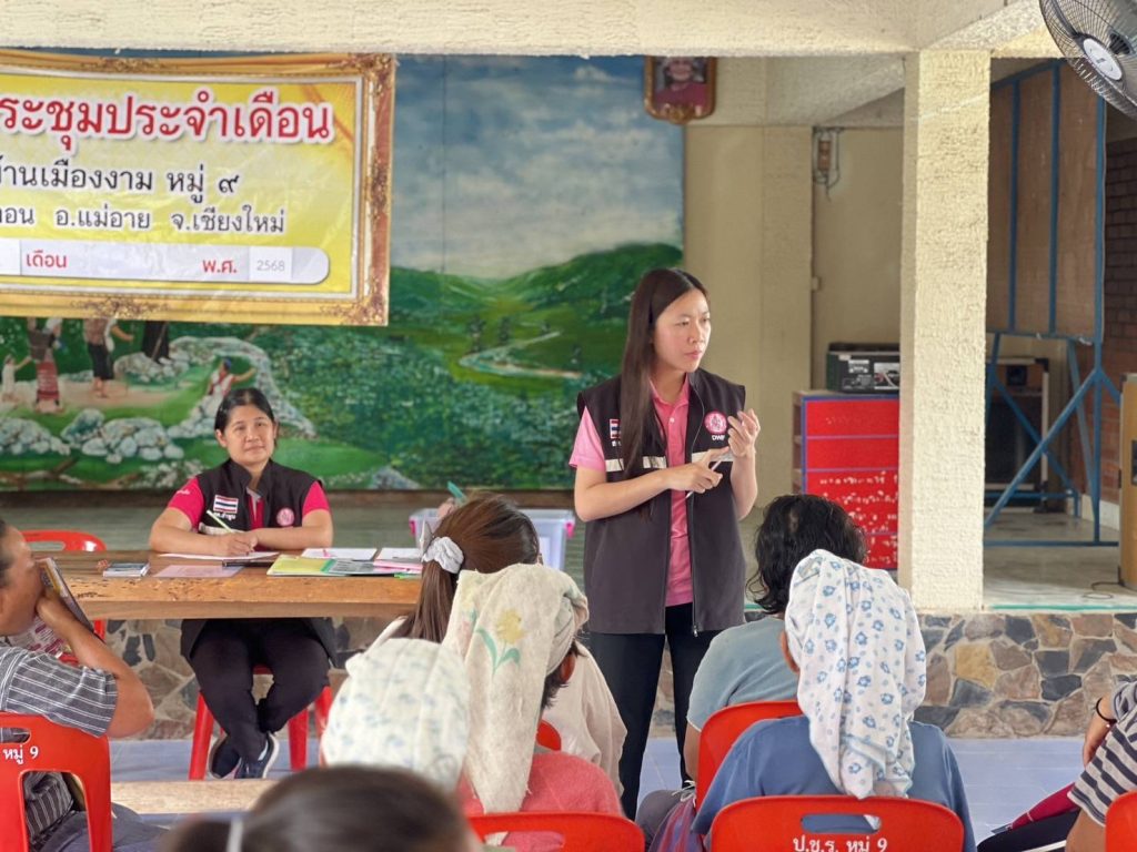 วันที่ 29 เมษายน 2568 นางรชยา ฮั่นตระกูล ผู้อำนวยการศูนย์เรียนรู้การพัฒนาสตรีและครอบครัวเฉลิมพระเกียรติ 72 พรรษา บรมราชินีนาถ จังหวัดลำพูน มอบหมายให้กลุ่มส่งเสริมการเรียนรู้และพัฒนาอาชีพ ลงพื้นที่ดำเนินการประชาสัมพันธ์ ชี้แจงรายละเอียดของกิจกรรมสร้างชีวิตใหม่ให้แก่สตรีและครอบครัว ให้แก่กลุ่มเป้าหมาย สตรีและครอบครัวบ้านเมืองงาม ตำบลท่าตอน อำเภอแม่อาย จังหวัดเชียงใหม่ เพื่อเก็บข้อมูลความพร้อมความต้องการ เพื่อประกอบการพิจารณาให้การสนับสนุนกิจกรรมสร้างชีวิตใหม่ให้แก่สตรีและครอบครัว ประจำปีงบประมาณ พ.ศ. 2568 ต่อไป ณ บ้านเมืองงาม ตำบลท่าตอน อำเภอแม่อาย จังหวัดเชียงใหม่