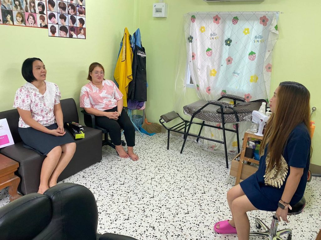 วันที่ 2 กรกฏาคม 2567 นางอรียาพร อรุณเนตร ผู้อำนวยการศูนย์เรียนรู้การพัฒนาสตรีและครอบครัวเฉลิมพระเกียรติ 72 พรรษา บรมราชินีนาถ จังหวัดลำพูน มอบหมายให้กลุ่มส่งเสริมการเรียนรู้และพัฒนาอาชีพ ลงพื้นที่ติดตามการมีรายได้มีงานทำของผู้สำเร็จการฝึกอาชีพ จำนวน 6 ราย ได้แก่ หลักสูตรฝึกทักษะอาชีพเสริมสวยเพื่อพัฒนาคุณภาพชีวิต (จำนวน 4 ราย), หลักสูตรบาริสต้าสร้างรายได้ รุ่น 3 (จำนวน 1 ราย) และหลักสูตรน้ำปั่นสมูทตี้ (จำนวน 1 ราย) ในการนี้ศูนย์ฯ ได้มอบผลิตภัณฑ์ที่ได้รับการสนับสนุนจากบริษัทลอนีอัล (ประเทศไทย) จำกัดให้แก่ผู้สำเร็จการฝึกอบรมอาชีพดังกล่าว ในพื้นที่จังหวัดลำพูน