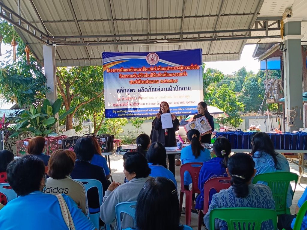 วันที่ 24 มกราคม 2568 นางรชยา ฮั่นตระกูล ผู้อำนวยการศูนย์เรียนรู้การพัฒนาสตรีและครอบครัวเฉลิมพระเกียรติ 72 พรรษา บรมราชินีนาถ จังหวัดลำพูนลำพูน มอบหมายให้กลุ่มส่งเสริมการเรียนรู้และพัฒนาอาชีพ ลงพื้นที่ติดตามและสรุปบทเรียน กิจกรรมสร้างชีวิตใหม่ให้แก่สตรีและครอบครัว ประจำปีงบประมาณ พ.ศ. 2568 “หลักสูตรผลิตภัณฑ์งานผ้าปักลาย” ให้แก่สตรีและครอบครัว กลุ่มผู้สูงอายุ ในเขตพื้นที่เทศบาลตำบลบ้านธิ จำนวนทั้งสิ้น 30 คน พร้อมทั้งให้ความรู้เกี่ยวกับ พรบ.ความเท่าเทียมระหว่างเพศ พ.ศ.2558 และมอบวุฒิบัตรให้แก่ผู้สำเร็จการฝึกอบรม ณ ที่ทำการกลุ่ม Triple P บ้านธิหลวง ตำบลบ้านธิ อำเภอบ้านธิ จังหวัดลำพูน