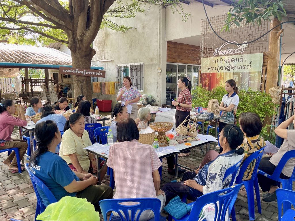 วันที่ 1 พฤษภาคม 2568 นางรชยา ฮั่นตระกูล ผู้อำนวยการศูนย์เรียนรู้การพัฒนาสตรีและครอบครัวเฉลิมพระเกียรติ 72 พรรษา บรมราชินีนาถ จังหวัดลำพูน มอบหมายให้กลุ่มส่งเสริมการจัดสวัสดิการสังคม ลงพื้นที่ติดตามผล และสรุปบทเรียนกิจกรรมสนับสนุนการรวมกลุ่มประกอบอาชีพ ประจำปีงบประมาณ พ.ศ. 2568 “หลักสูตรผลิตภัณฑ์งานผ้าย้อมสีโมคคัลลาน” เพื่อติดตามผลการดำเนินกิจกรรมสรุปบทเรียน ปัญหาอุปสรรค แนวทางการพัฒนา และต่อยอดผลิตภัณฑ์ของกลุ่มอาชีพ ณ ที่ทำการกลุ่มทอผ้าสีธรรมชาติฝ้ายเชิงดอย ตำบลสบเตี๊ยะ อำเภอจอมทอง จังหวัดเชียงใหม่
