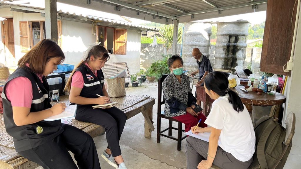 ระหว่างวันที่ 26 – 28 พฤศจิกายน 2567 นางรชยา ฮั่นตระกูล ผู้อำนวยการศูนย์เรียนรู้การพัฒนาสตรีและครอบครัวเฉลิมพระเกียรติ 72 พรรษา บรมราชินีนาถ จังหวัดลำพูน มอบหมายให้ข้าราชการ เจ้าหน้าที่กลุ่มแผนงานและวิชาการ และกลุ่มส่งเสริมการจัดสวัสดิการสังคม ร่วมลงพื้นที่จัดเก็บข้อมูลประชากร “โครงการการเปลี่ยนสภาพอากาศกับเพศสภาพ” ซึ่งดำเนินการร่วมกับ “โครงการศึกษาการสนับสนุนกลุ่มประชากรเปราะบาง : การเสริมสร้างความเข้มแข็งในการปรับตัวทางสังคม และการปรับเปลี่ยนสภาพภูมิอากาศของชุมชนในประเทศไทย” ที่วิทยาลัยประชากรศาสตร์ จุฬาลงกรณ์มหาวิทยาลัย ธนาคารโลกประจำประเทศไทย และกระทรวงการพัฒนาสังคมและความมั่นคงของมนุษย์ กำลังดำเนินการอยู่ โดยมีรองศาสตราจารย์ ดร.รัตติยา ภูละออ หัวหน้าโครงการเป็นผู้นำทีมคณะผู้วิจัยลงพื้นที่สัมภาษณ์เกี่ยวกับข้อมูลทั่วไป เศษฐกิจ และสังคมของพื้นที่ ประกอบกับประเด็นของกลุ่มเปราะบางที่ได้รับผลกระทบจากการเปลี่ยนแปลงสภาพภูมิอากาศ ที่ส่งผลต่อการดำเนินชีวิตในปัจจุบัน และการเตรียมพร้อมรับกับการเปลี่ยนแปลงของสภาพภูมิอากาศในอนาคต ในพื้นที่ตำบลท่าตอน อำเภอแม่อาย จังหวัดเชียงใหม่