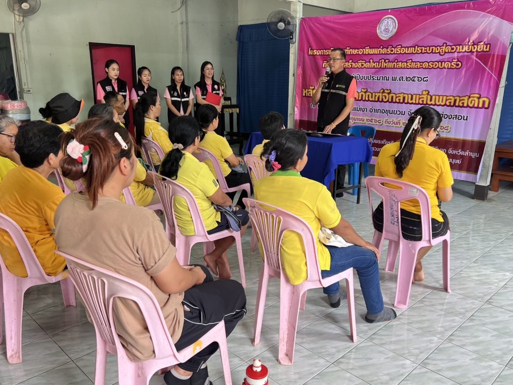 วันที่ 10 มิถุนายน 2568 นางรชยา ฮั่นตระกูล ผู้อำนวยการศูนย์เรียนรู้การพัฒนาสตรีและครอบครัวเฉลิมพระเกียรติ 72 พรรษา บรมราชินีนาถ จังหวัดลำพูน มอบหมายให้เจ้าหน้าที่กลุ่มส่งเสริมการเรียนรู้และพัฒนาอาชีพ และฝ่ายบริหารทั่วไป ลงพื้นที่ดำเนินการเปิดกิจกรรมสร้างชีวิตใหม่ให้แก่สตรีและครอบครัว ประจำปีงบประมาณ พ.ศ. 2568 “หลักสูตรผลิตภัณฑ์จักสานเส้นพลาสติก” ให้แก่สตรีและครอบครัวบ้านแม่หลวง ตำบลแม่เงา อำเภอขุนยวม จังหวัดแม่ฮ่องสอน เพื่อเป็นการส่งเสริมอาชีพ สร้างงาน สร้างรายได้ สามารถเลี้ยงดูตนเองและครอบครัว ในการนี้ได้รับเกียรติจาก นายธะนะสิทธิ์ เนื้อนวลจันทร์ นายกองค์การบริหารส่วนตำบลแม่เงา เป็นประธานในพิธีเปิดและให้โอวาทแก่ผู้เข้าร่วมกิจกรรมดังกล่าวฯ จำนวนทั้งสิ้น 20 คน ณ ที่ทำการกลุ่มบ้านหลวง ตำบลแม่เงา อำเภอขุนยวม จังหวัดแม่ฮ่องสอน