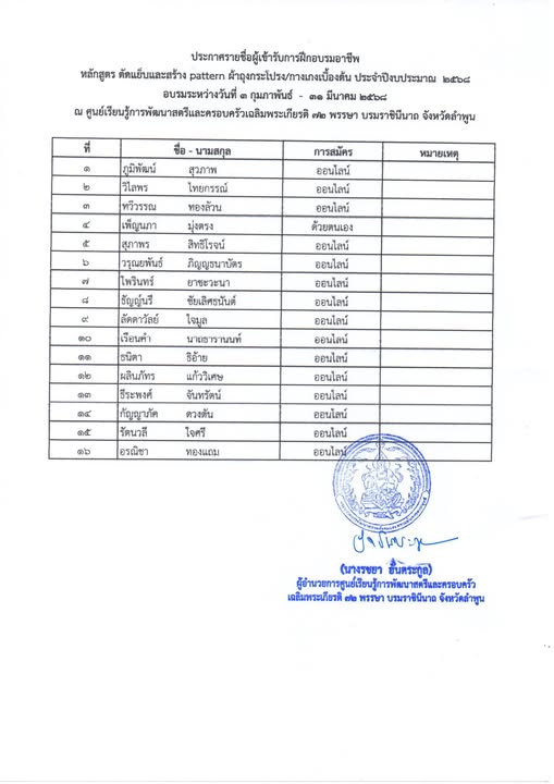 ðŸ—ĢïļðŸ“Ģāļ›āļĢāļ°āļāļēāļĻāļĢāļēāļĒāļŠāļ·āđˆāļ­āđ€āļžāļ·āđˆāļ­āļĒāļ·āļ™āļĒāļąāļ™āļœāļđāđ‰āđ€āļ‚āđ‰āļēāļĢāļąāļšāļāļēāļĢāļāļķāļāļ­āļšāļĢāļĄāļ­āļēāļŠāļĩāļž (āļˆāļąāļ™āļ—āļĢāđŒ – āļĻāļļāļāļĢāđŒ) āļŦāļĨāļąāļāļŠāļđāļ•āļĢāļĢāļ°āļĒāļ°āļŠāļąāđ‰āļ™āļ āļēāļĒāđƒāļ™āļŠāļ–āļēāļšāļąāļ™ (āļĢāļđāļ›āđāļšāļš On –site) āļ•āļēāļĄāļĢāļēāļĒāļŠāļ·āđˆāļ­āļ‚āļ­āļ‡āļŦāļĨāļąāļāļŠāļđāļ•āļĢ āļ”āļąāļ‡āļ™āļĩāđŒ