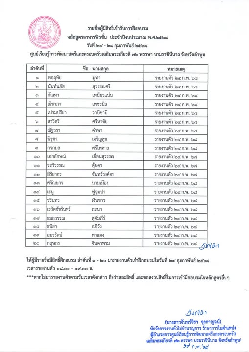 ตามรายชื่อของหลักสูตร ดังนี์ (หลักสูตรระยะสั้น 5 วัน)